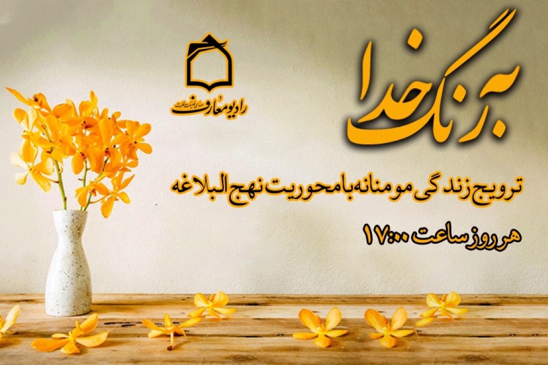 برنامه «به رنگ خدا» به همت گروه قرآن و اهل بیت ( ع) به تهیه كنندگی سید محمد علی حسینیان و اجرای رضا حبیبی شنبه تا پنجشنبه ساعت 17:30 از رادیو معارف به روی آنتن می رود.