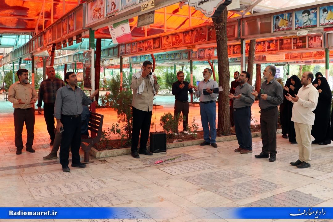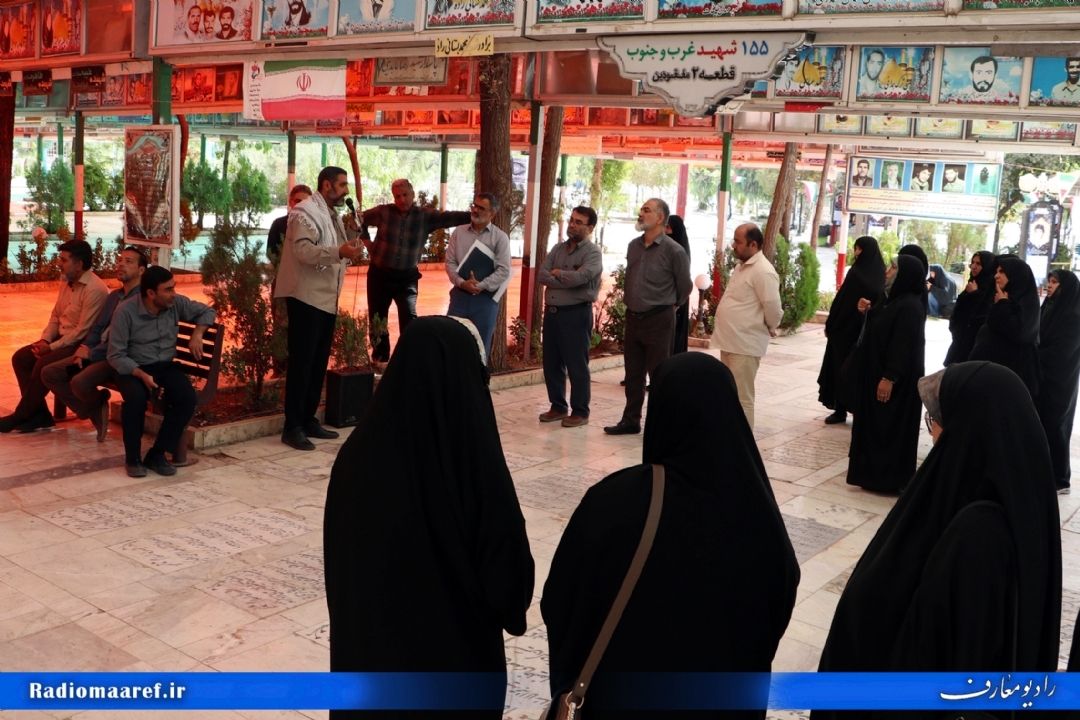 گزارش تصویری از زیارت قبور شهداء و روایتگری رزمنده اسلام جناب آقای فراهانی به مناسبت هفته دفاع مقدس _ گلزار شهداء قم